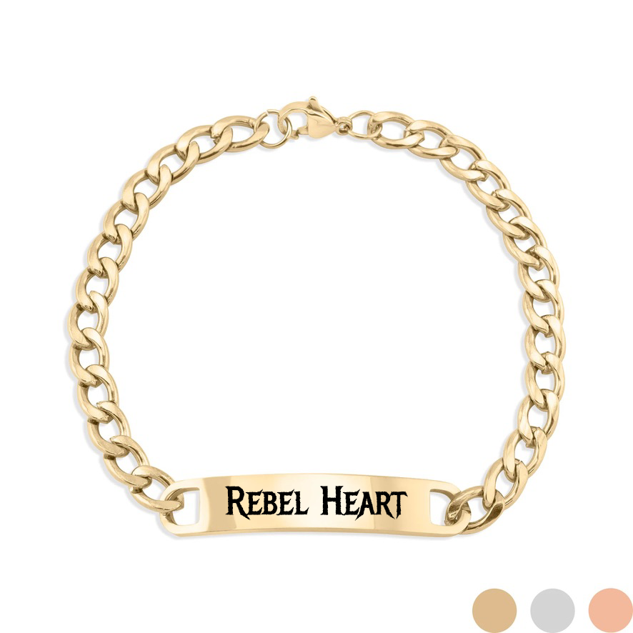 The Personalizable Gold Curved Bar Bracelet is a must-have for those who value quality and customization. Made of hypoallergenic surgical steel, it ensures no tarnishing and features a spacious 30 mm engravable bar (measuring 40 x 8 mm). With a stunning gold curb chain and secure lobster clasp closure, this bracelet is both stylish and practical.