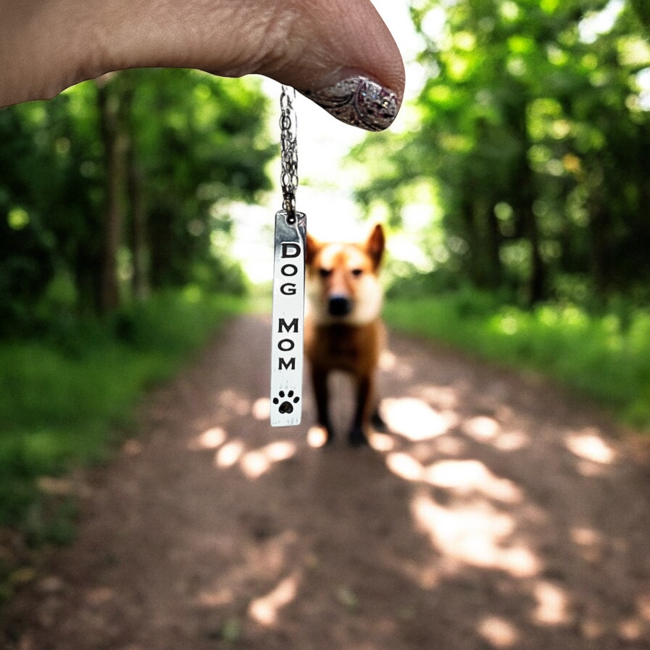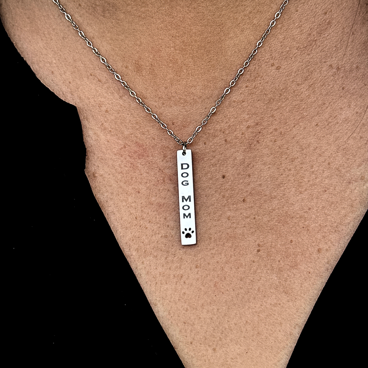 Make a statement with our Vertical Paw Print Necklace! It features a sleek bar pendant with a small paw print cut out, making it the perfect accessory for animal lovers. With the option to personalize it, this necklace is a must-have for anyone passionate about their furry friends. Choose from a highly polished gold or silver finish, both hypoallergenic and vacuum-plated. The pendant measures 32 mm x 5 mm and offers 22 mm of space for engraving. Complete the look with our 16" or 18" crimped stainless steel cable chain, both with a 2" extension.
