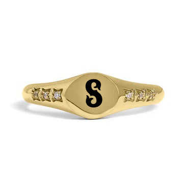 Personalized Gold Oval Crystal-Lined Signet Ring