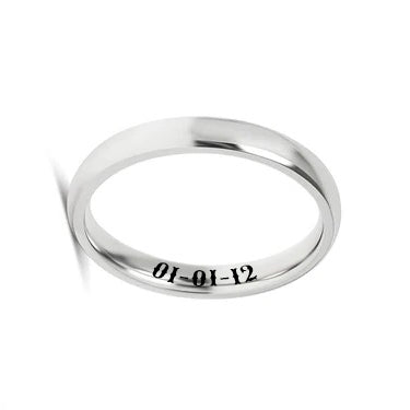 Experience the elegance and versatility of our highly polished rounded stainless steel ring. At 3 mm wide, it's perfect for a thin-lined text on the inner band. Personalize it with a name, short phrase, or special date to create a truly unique piece. Made from hypoallergenic and nontarnish stainless steel, it's not only stylish but also practical for everyday wear. Elevate your style with this customizable ring today!