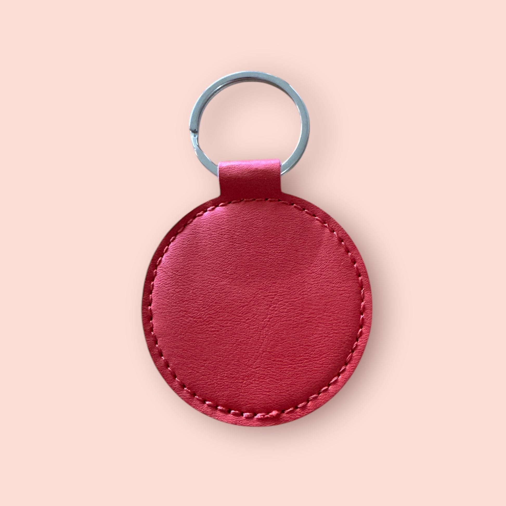 This round leatherette key ring is perfect for engraving a special phrase or name. Choose from a variety of colors such as brown, white, red, or black to add a personal touch. It's the essential accessory for any stylish and sentimental individual.